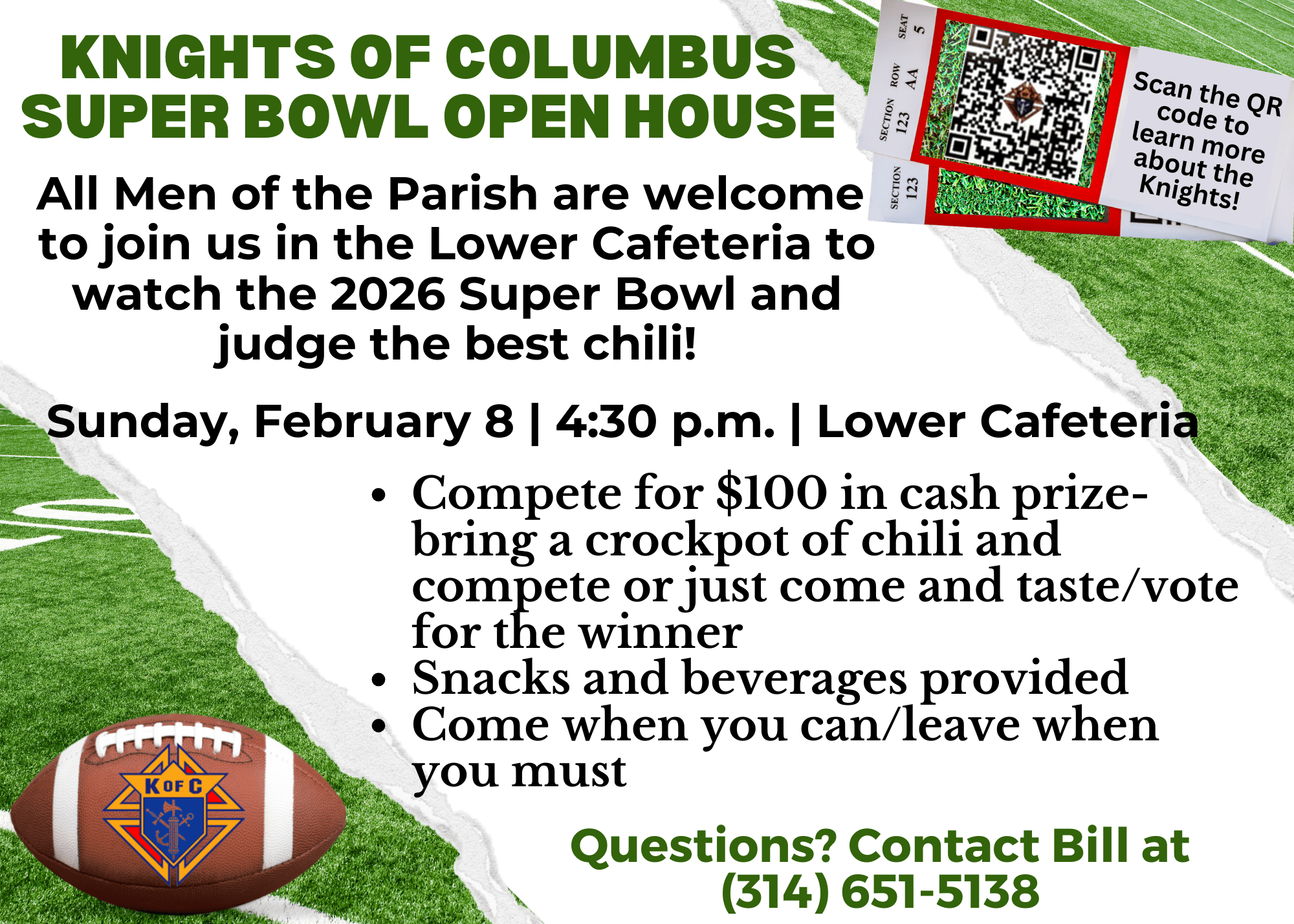 January 28, 2026 admin News All men of the Parish are welcome to join us in the Lower Cafeteria to watch the 2026 Super Bowl and judge the best chili!