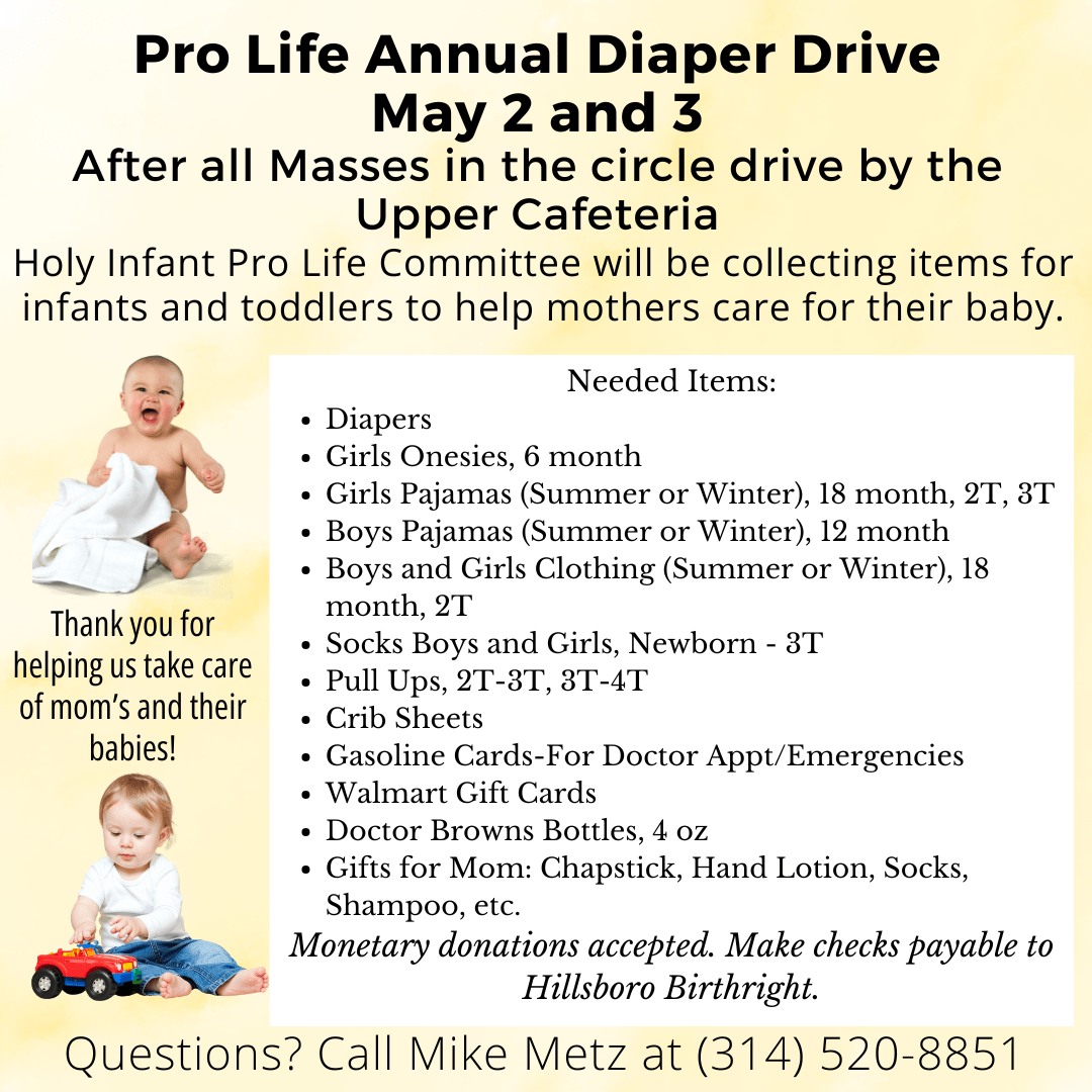 Pro Life Annual Diaper Drive – May 2-3