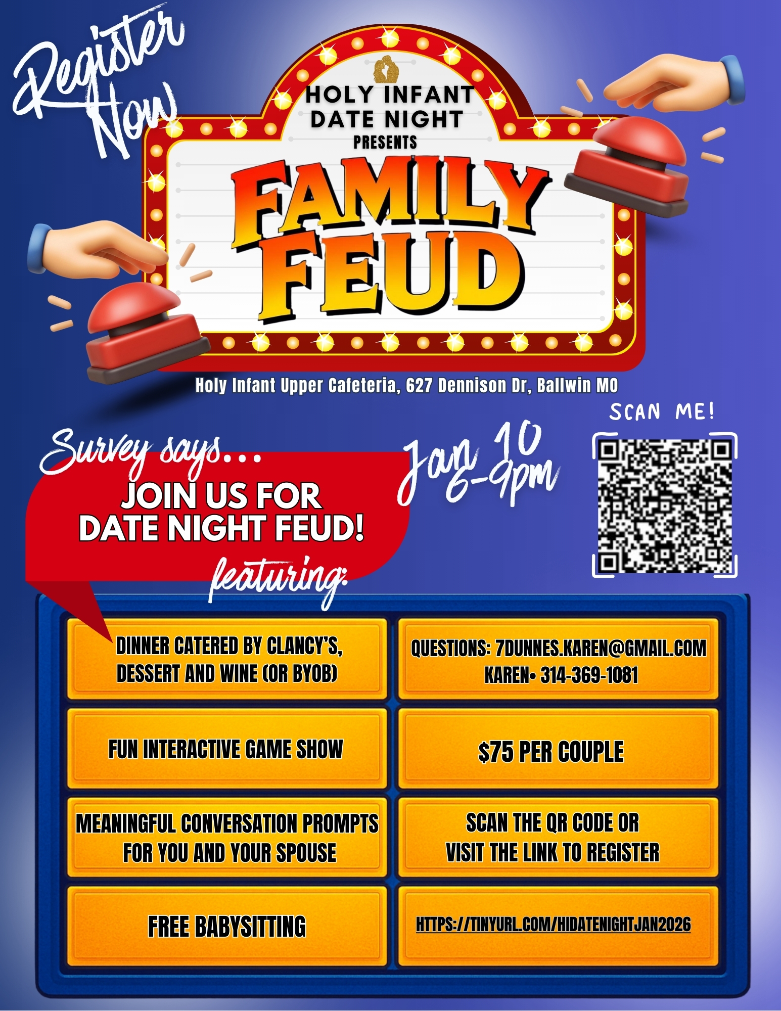 Join us for Date Night Feud!! CLICK HERE TO REGISTER QUESTIONS: 7dunnes.karen@gmail.com (314) 369-1081