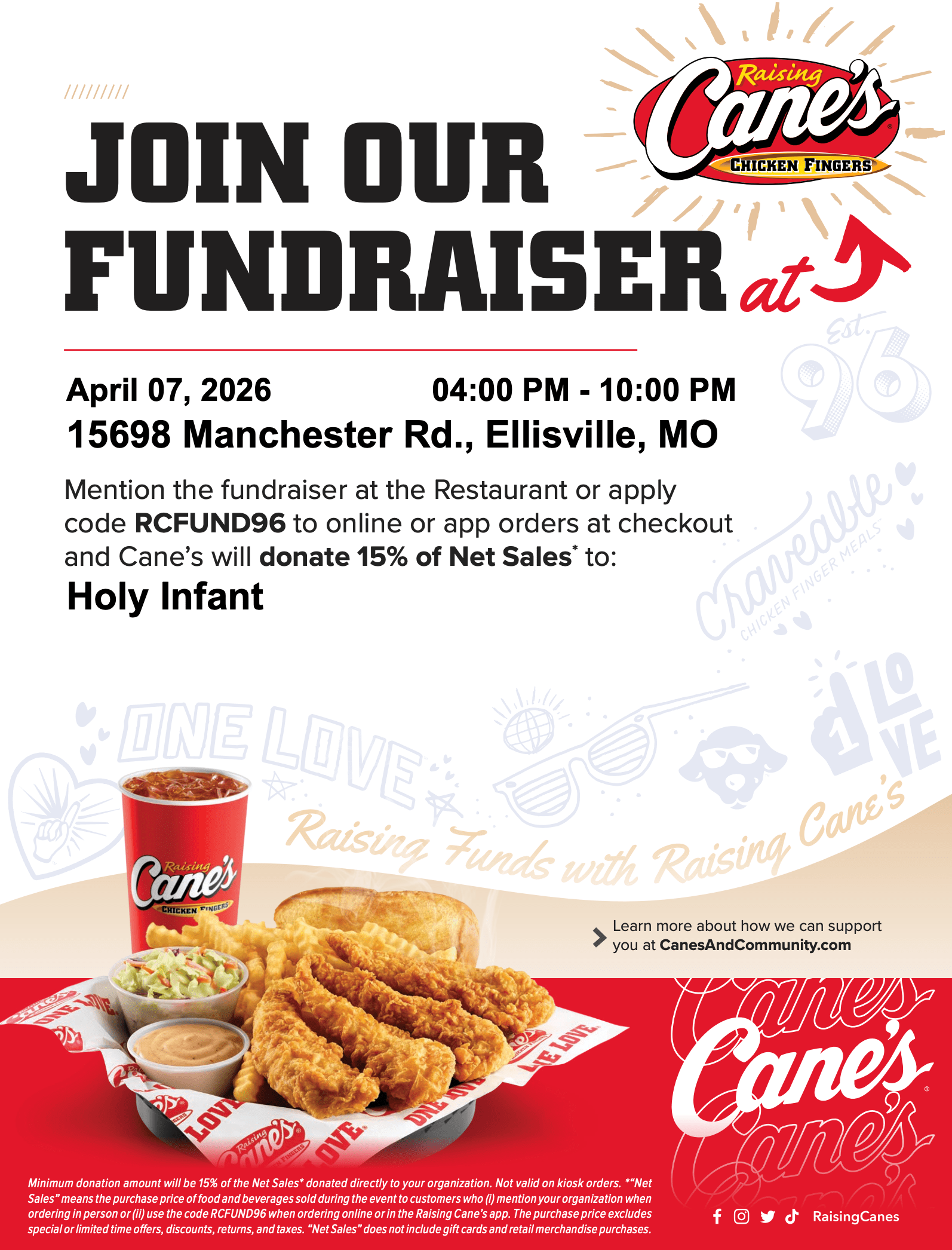 Join our Fundraiser at Raising Canes! Tuesday, April 7 – 4-10pm